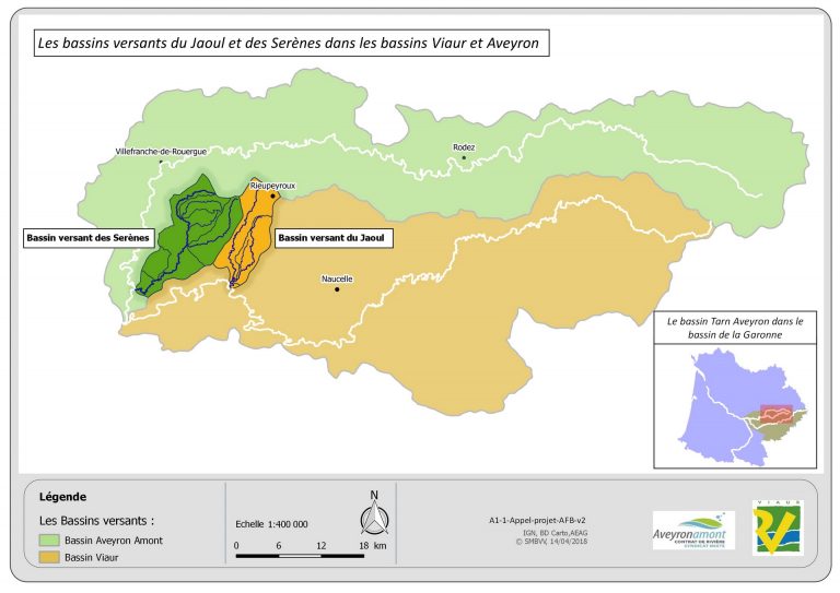 Disposant d’un historique de données important, et présentant des similitudes (contexte naturel, occupation des sols,…) permettant les comparaisons, ce sont les bassins versants du Jaoul (côté Viaur) et des Serènes (côté Aveyron) qui ont été choisis comme territoires d’études.